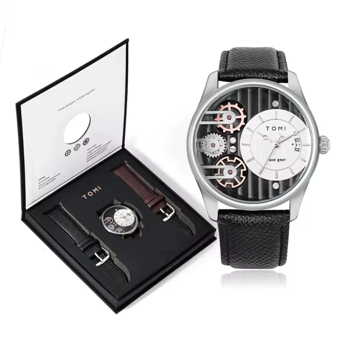 Experience the perfect balance of style and function with the TOMI™ EliteFlex Gift Set — a refined timepiece crafted for men who value elegance and adaptability. Designed with a sleek alloy case and clean numberless dial, this watch captures a sophisticated minimalist aesthetic suited for both business and casual settings.