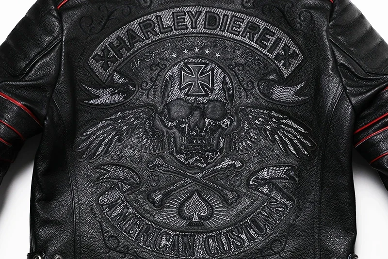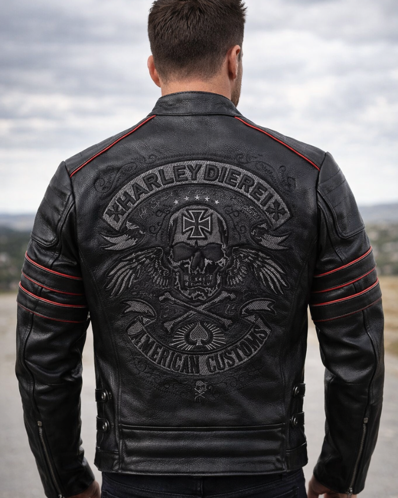 IRONSKULL™ Genuine Cowhide Embroidered Motorcycle Leather Jacket – Slim Fit Men’s Biker Coat (S-6XL)